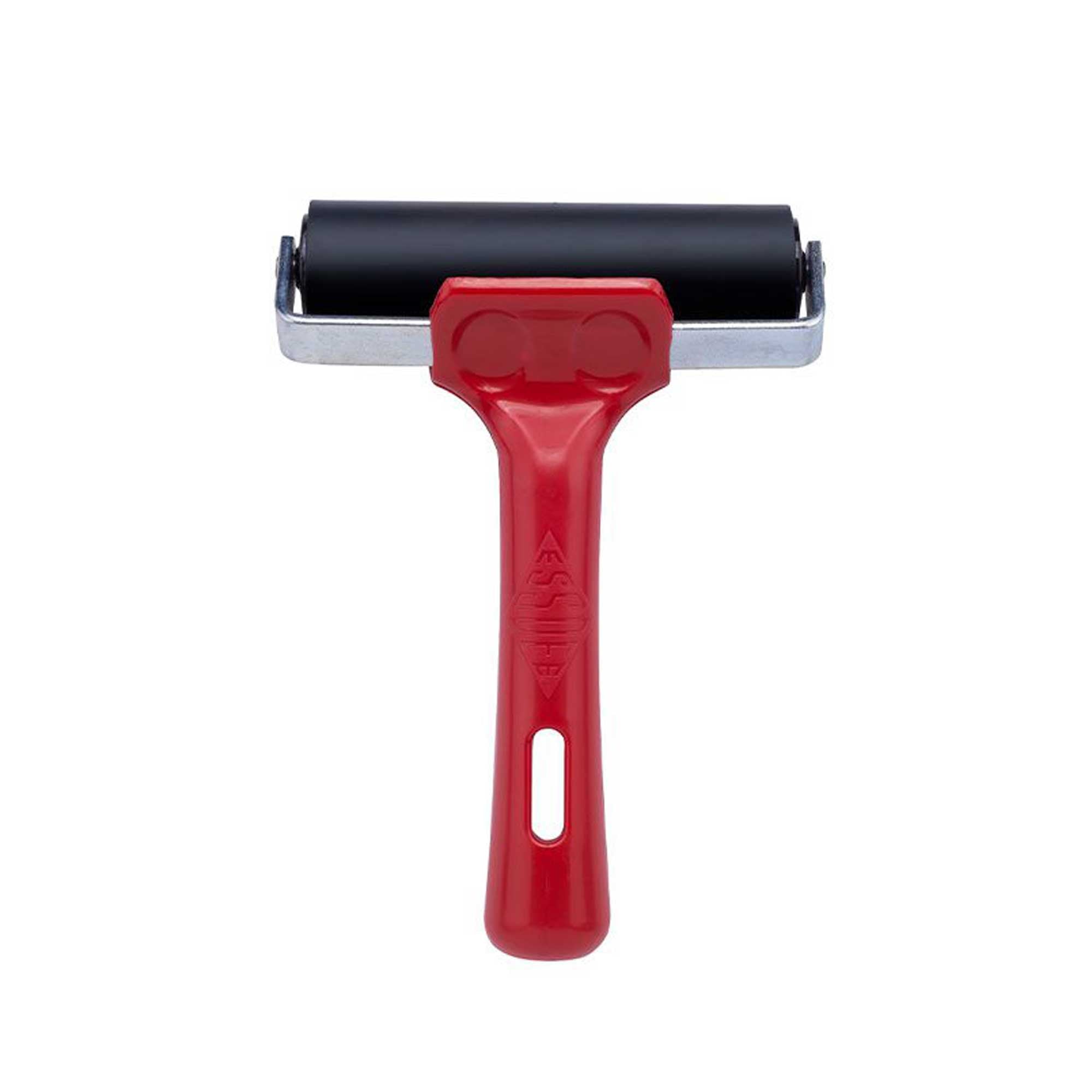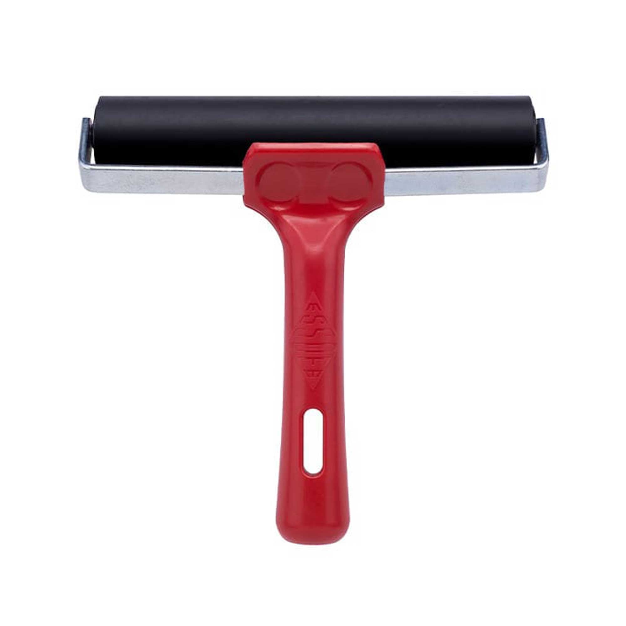 The Essdee Ink Roller is a strong, sturdy and versatile hard-rubber ink roller ideal for printmaking. Features a perfect machine ground 70 shore EPDM rubber roller, with an aluminium core, self-lubricating nylon bearings, a continuous steel shaft and rigid steel brackets making this a tough and dependable tool. The unbreakable polypropylene handle features a useful hanging slot and doubles as a stand when turned over for clean working when printing. Can be used with both water and oil-based inks and is strong enough to be used for industrial purposes like the application of window films and vehicle graphics.