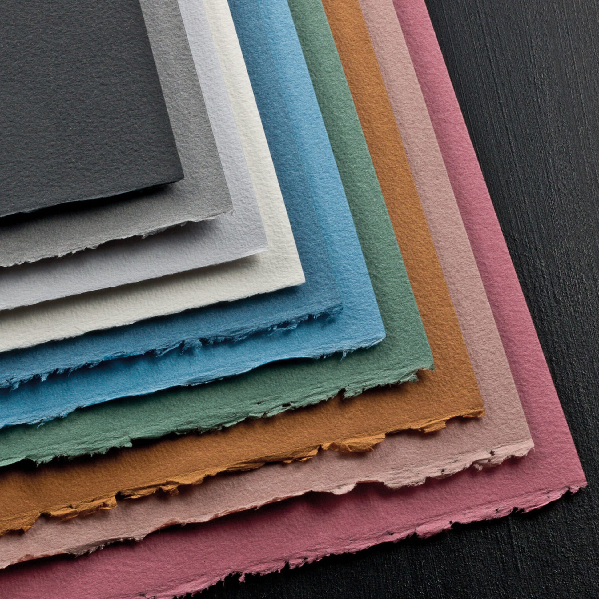 Cromia is the synthesis of Fabriano's papermaking tradition combined with the most advanced colour technology. Cromia is mould-made with 50% cotton and 50% alpha-cellulose; this streamlined process alongside the two deckled edges give Cromia similar characteristics to handmade paper.