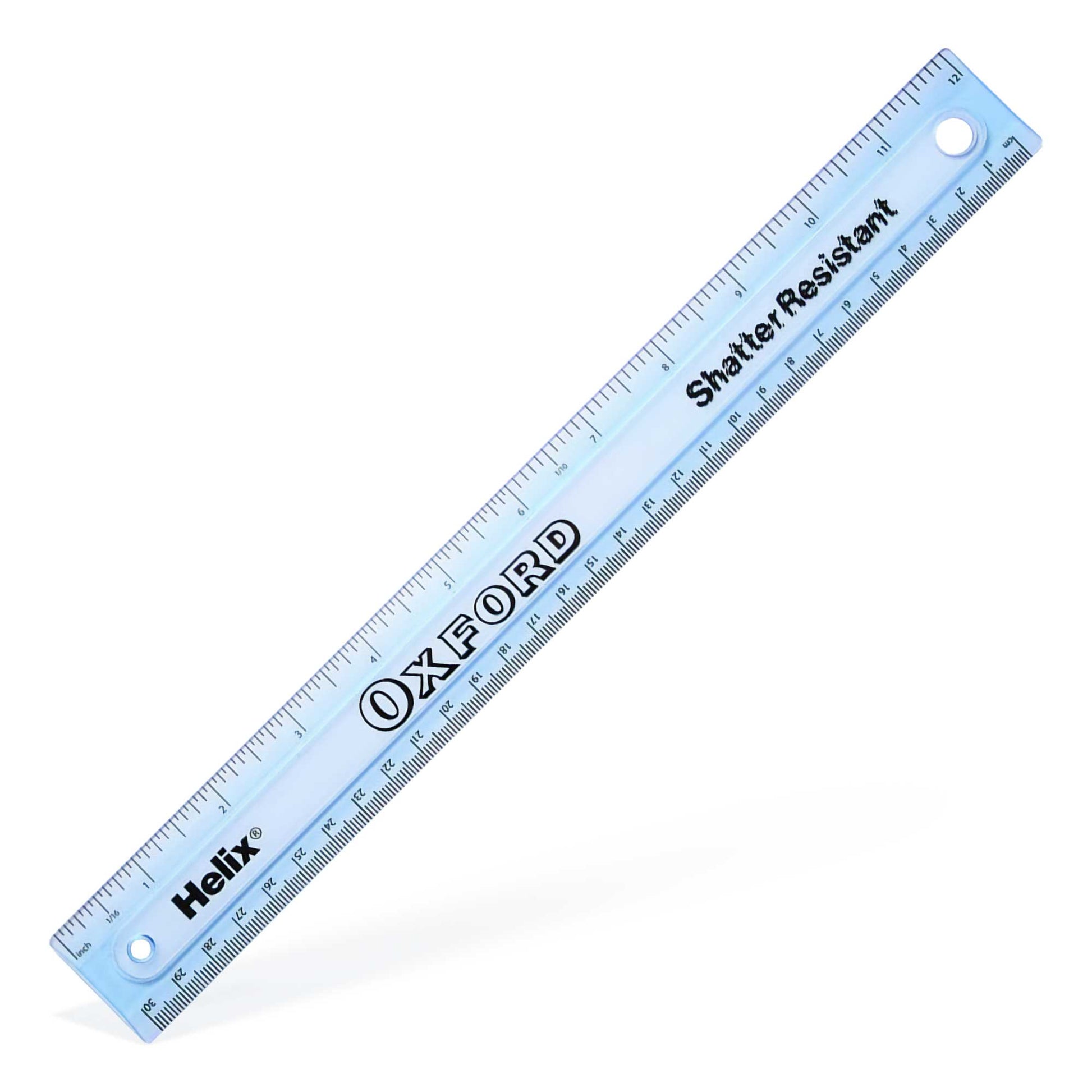 The Helix Oxford Shatter Resistant Ruler is the perfect tool for measuring and drawing straight lines. It features easy-to-read metric and imperial graduations, measuring 30cm and 12".
