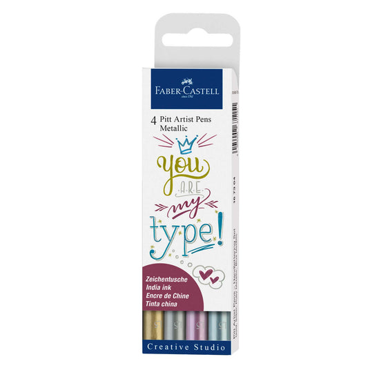Faber-Castell India Ink Pitt Pen Wallet - Set of 4 Pens - METALLIC