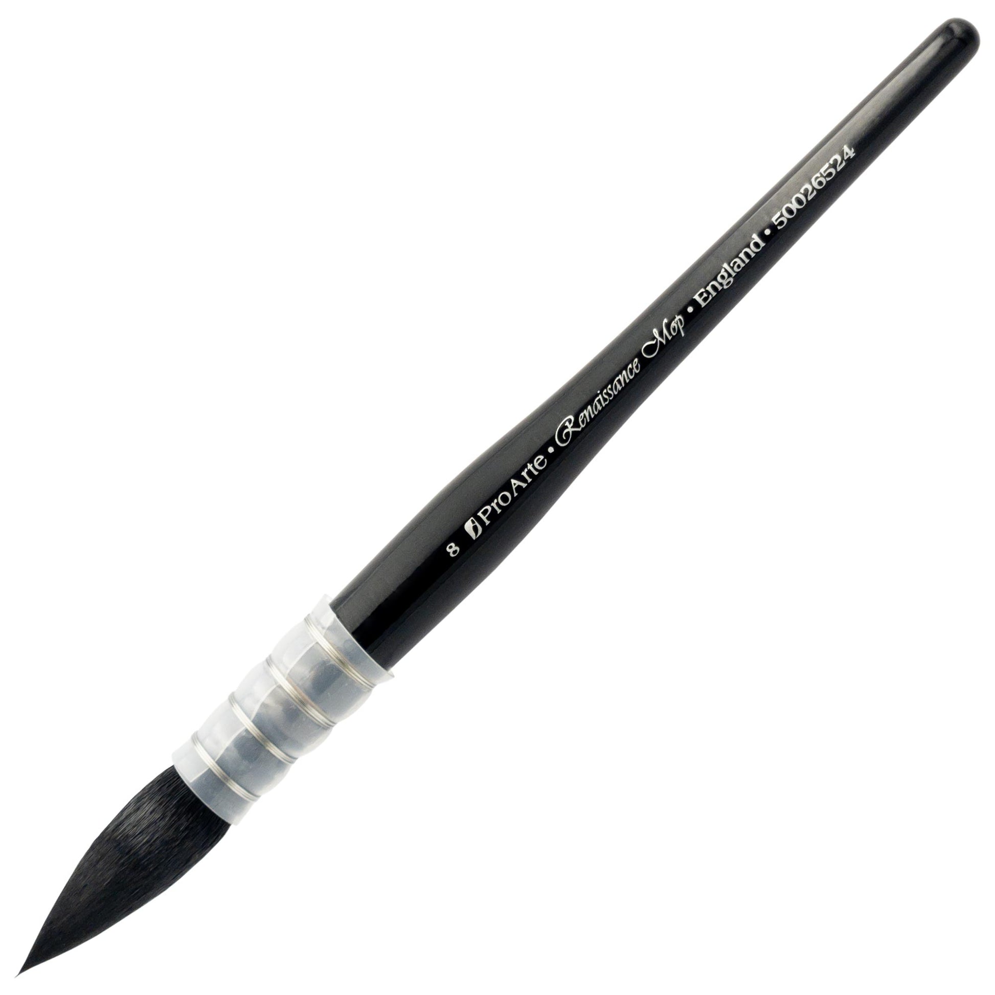 This range of Renaissance Mop Brushes from Pro Arte were developed as a substitute for the Renaissance Pure Squirrel range due to the scarcity of hair supply and increased costs. These brushes are manufactured from soft black goat hair, which is intended to mimic the qualities of pure squirrel hair.