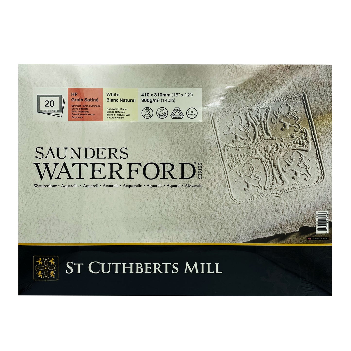 Saunders Waterford is an exquisite English watercolour paper, traditionally made on a cylinder mould machine. This is the superior quality paper made at St Cuthberts Mill and comes with the Royal Watercolour Society's endorsement.