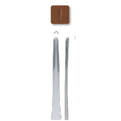 - RGM-L-332: 8cm in length, 10mm wide at base, 8mm wide at tip. This blade is a flat chisel