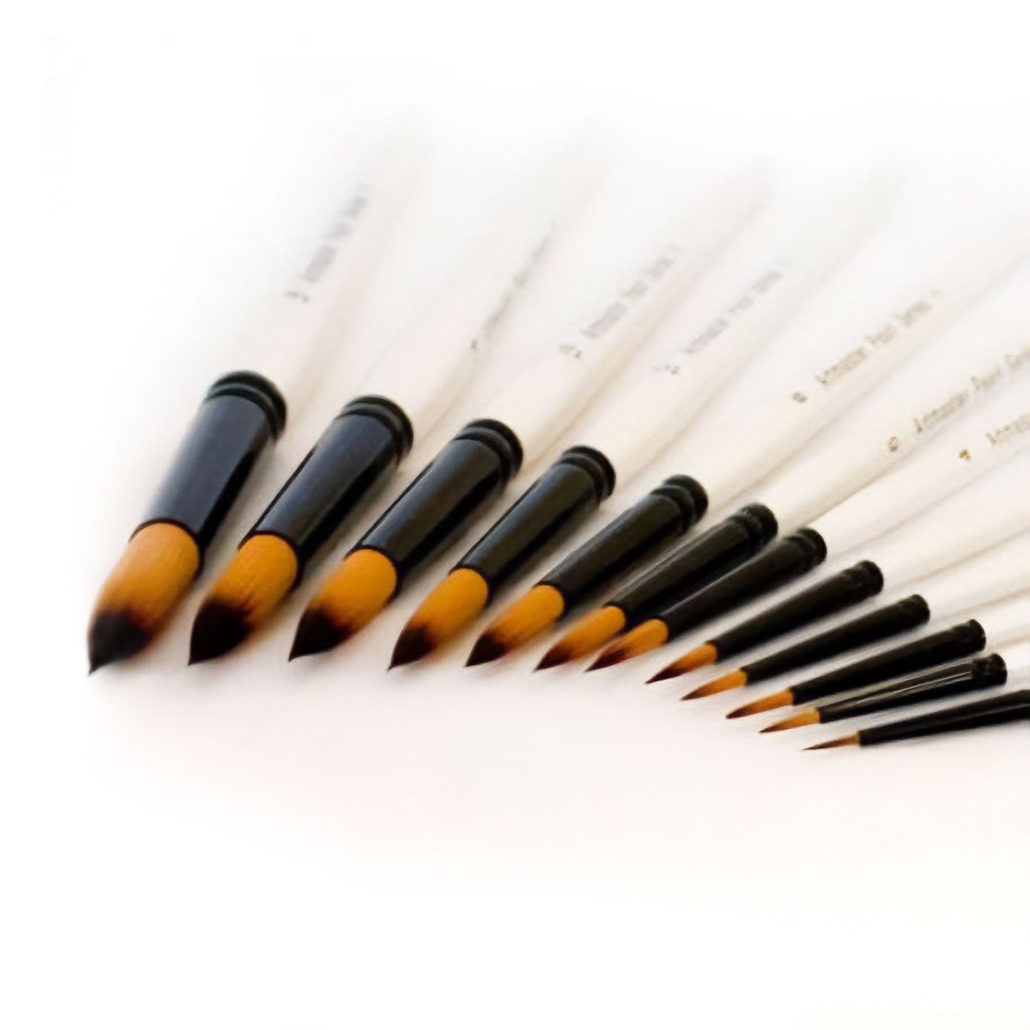 A range of quality synthetic brushes which are firm enough for Acrylic painting yet soft enough for Watercolour painting. Available in sizes 2, 4, 6, 8, 10, and 12, the Artmaster Pearl Brushes have an attractive pearl finish with black metal ferrules.
