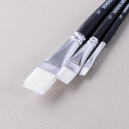 Made especially for ARTdiscount, these Flat School Brushes come in packs of 10, making them an excellent value for educators and art classes. Flat/One Stroke brushes enable you to produce broad, fine strokes, making them ideal for blocking, lettering, or wherever a sharp edge is required.