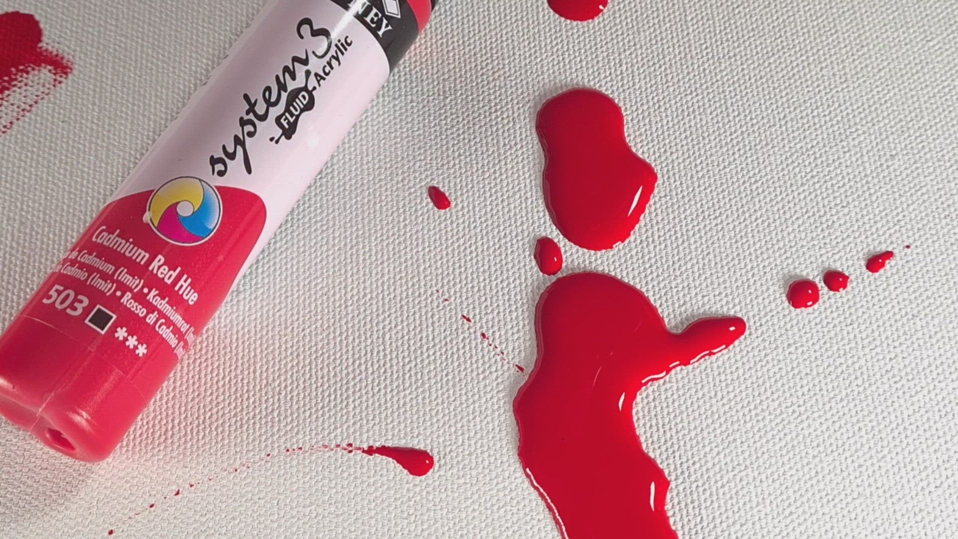 The System3 Fluid Acrylic has a highly intense pigment load which equals high tinting strength. Its fluid consistency allows you to load a brush more evenly, allows more uniform brushstrokes, and assists with long painting strokes without reloading the brush.