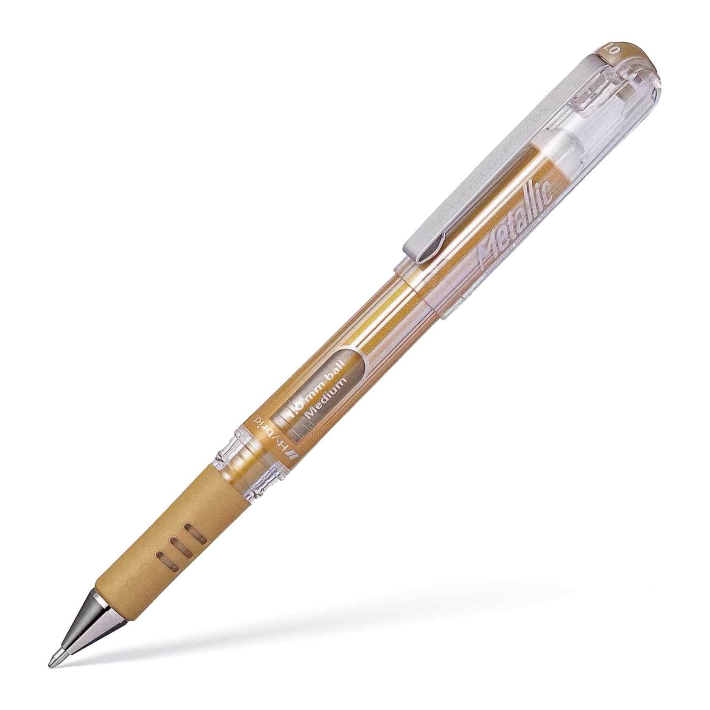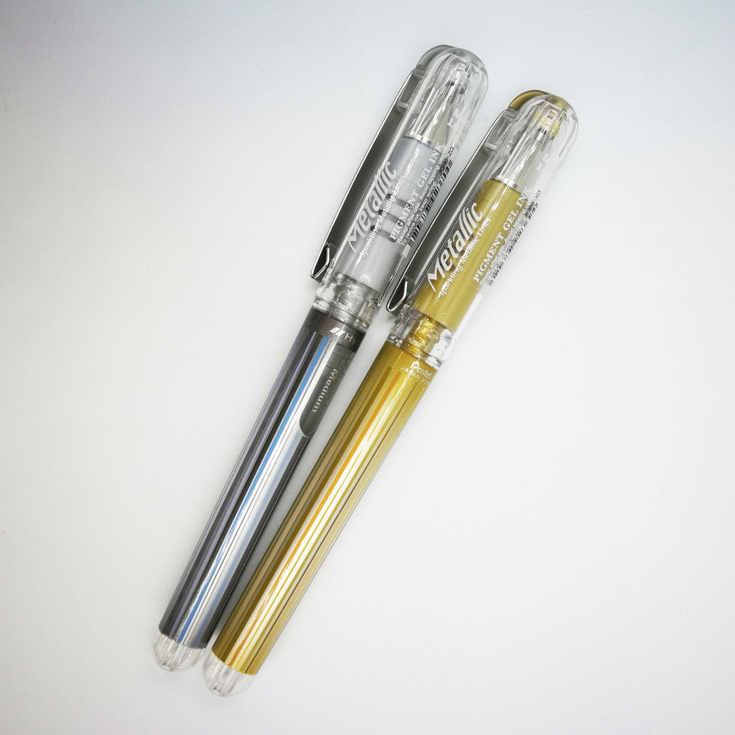 The Pentel Hybrid Gel Grip DX Metallic gives artists and calligraphers an ultra-smooth flowing acid-free pigment gel ink, housed within a distinctive and ergonomic chunky barrel. The latex-free finger grip offers enhanced control and comfort, making this gel pen a great option for when precision counts.