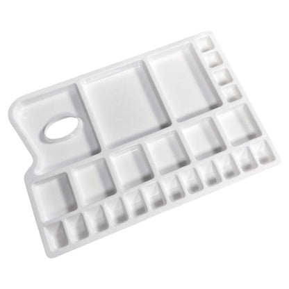 Made from durable plastic, this rectangular palette measures 230mm x 340mm and features 25 columns of various sizes, allowing artists to mix and blend colours with ease.