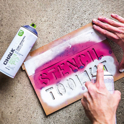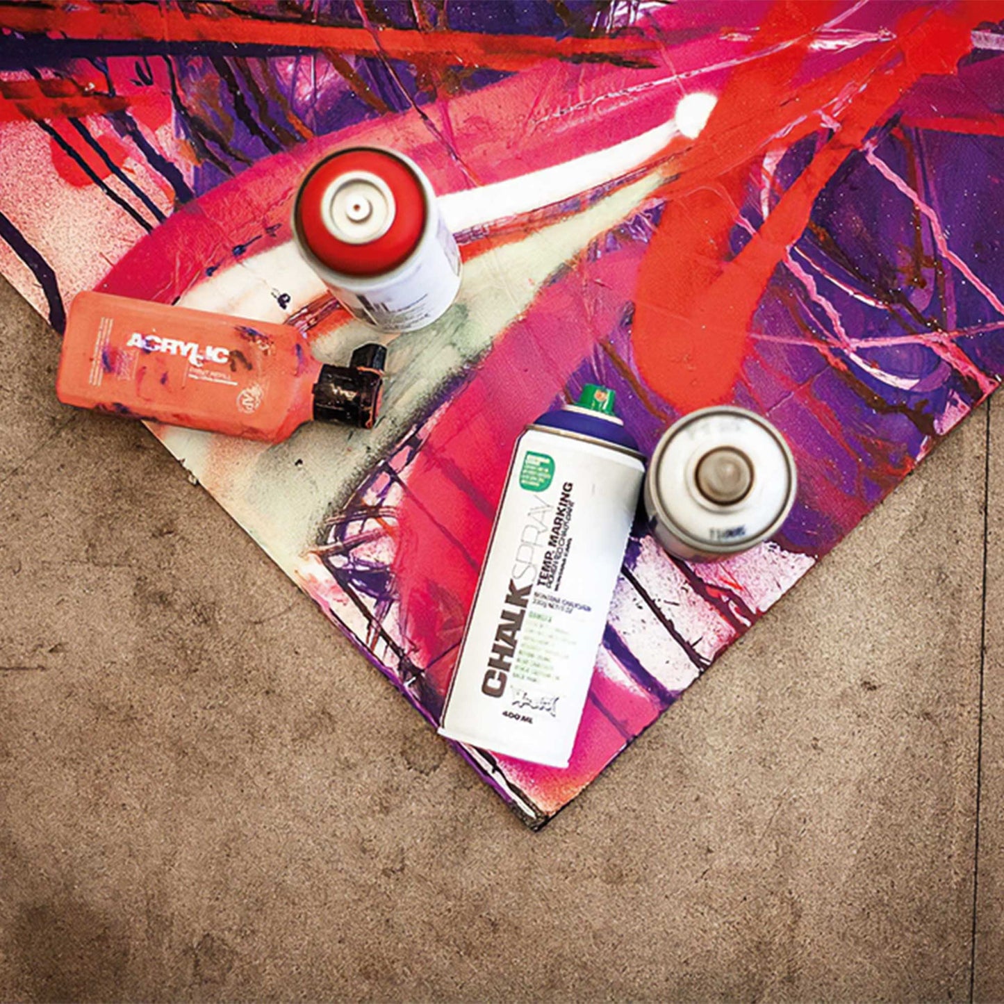Montana CHALKSPRAY is a chalk-based pigment spray, ideal for outdoor temporary marking as well as for indoor studio artwork. It is available in 10 powerful colour shades that are deep matte and high covering.