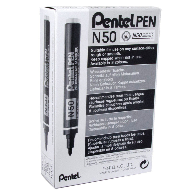 Pentel Black Bullet Point Permanent Markers - Box of 12