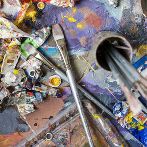 These brushes feature a longer handle allowing expressive/gestural strokes to give a dynamic and lively painting as well as allowing the artist to stand at a distance from the painting.
