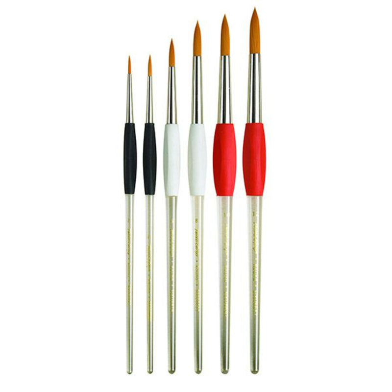 Pro Arte TwistGrips are an inexpensive, general purpose range of brushes that feature ergonomic grips, offering artists greater control and comfort when working. The bristles consist mainly of synthetic hair, which has a consistency agreeable with most media applications.