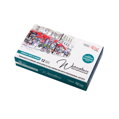 This Urban Sketching Watercolour Set from ROSA Gallery contains twelve whole pan watercolours perfect for painting urban scenes on the go. This set is a great companion for reportage work.