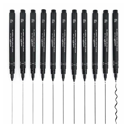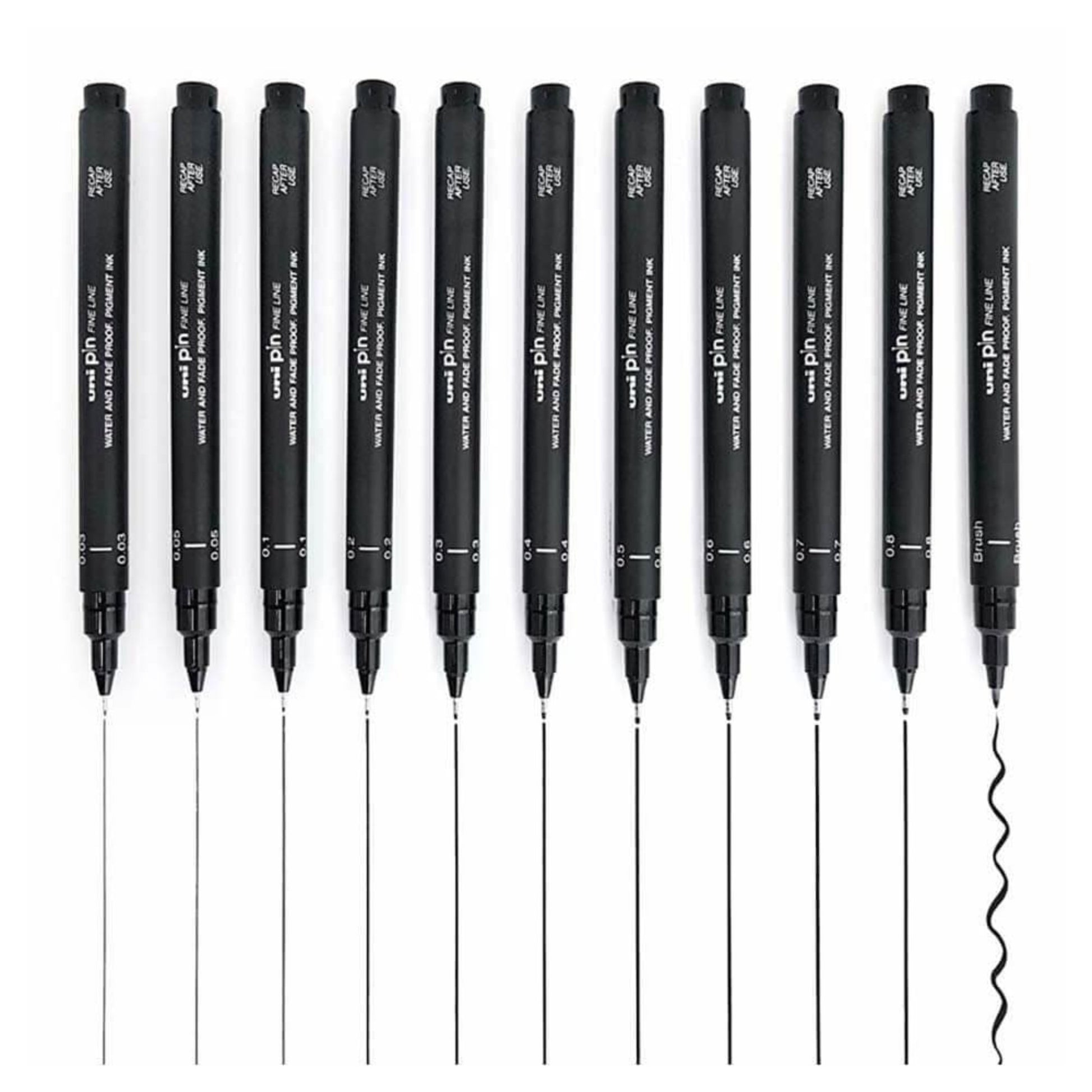 Uni Pin Fineliner pens are ultra-fine markers with fantastic water resistance. They won't smear, even if water gets on the page. The ink in the Uni-Pin fineline markers is extremely light resistant and will not fade with continuous exposure to light.