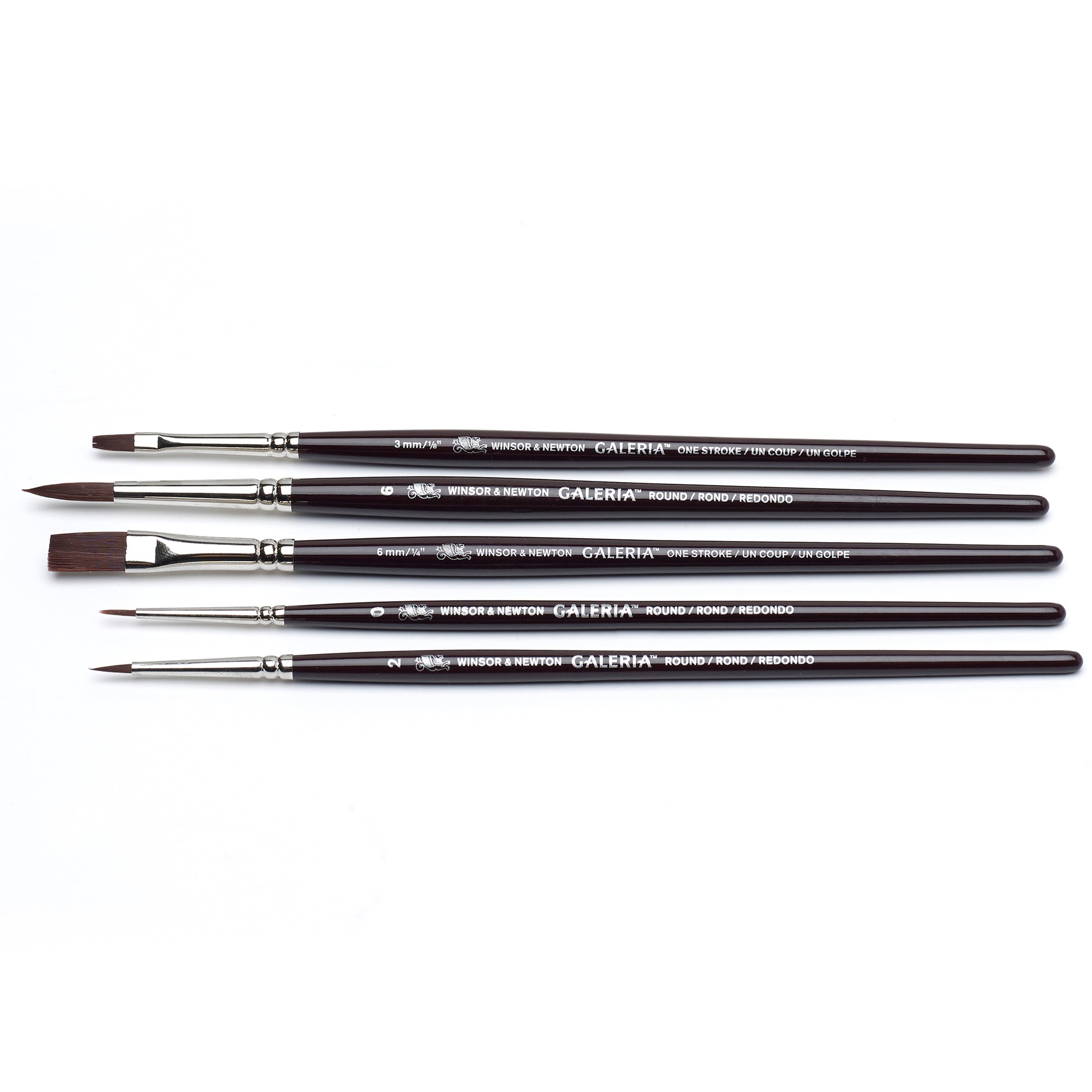 This brush set from Winsor & Newton is perfect for use with acrylic colours, such as Winsor & Newton's own Galeria range. It features five brushes – two One Stroke, three round – which are ideal for a range of mark making opportunities.